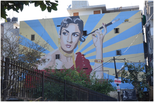 Figure 4. Street mural in Delhi, of mid-century Bollywood’s legendary actress Nadira, born as Florence Ezekiel. She acted in India’s first technicolour 1952 production, ‘Aan’.